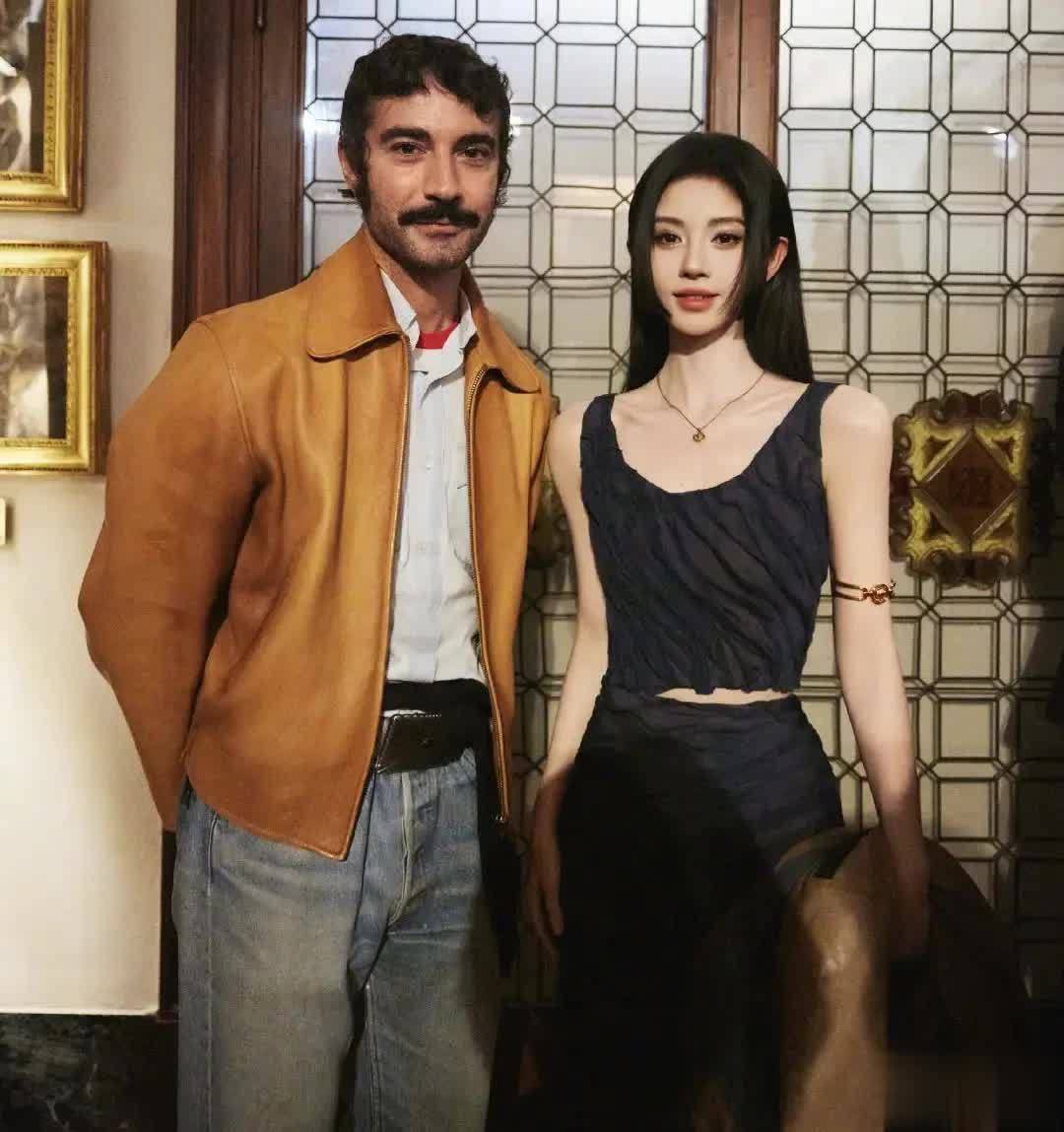 此次亮相不仅征服了大众,更赢得了国际权威认可。意大利摄影师主动跟拍,生图登上《Vogue》意大利官网,被冠以“东方甜心”称号。她更是唯一一位与VERSACE首席创意总监Dario Vitale合影的嘉宾,足见品牌方的高度重视。从妆造到仪态,从气质到气场,鞠婧祎用一套幽蓝薄纱,完成了一场关于女性自我觉醒的视觉宣言。